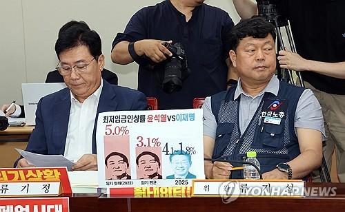 최저임금위, '엇갈린 시선'(세종=연합뉴스) 배재만 기자 = 최저임금위원회 사용자위원인 류기정 한국경영자총협회 전무(왼쪽)와 근로자위원 류기섭 한국노총 사무총장이 10일 정부세종청사에서 열린 최저임금위원회 제12차 전원회의에서 나란히 자리하고 있다. 2025.7.10 scoop@yna.co.kr ▶제보는 카카오톡 okjebo▶연합뉴스 앱 지금 바로 다운받기~▶네이버 연합뉴스 채널 구독하기<저작권자(c) 연합뉴스, 무단 전재-재배포, AI 학습 및 활용 금지>