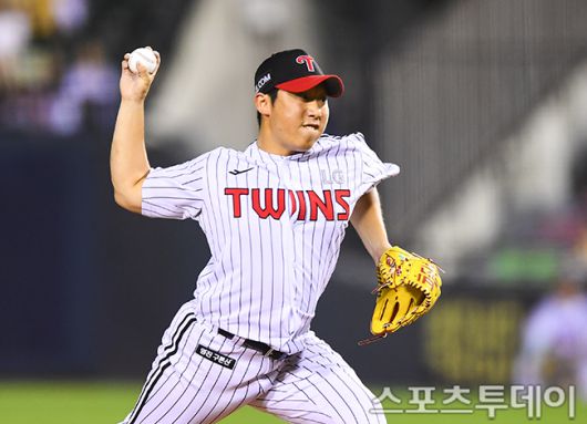 [스포츠투데이 팽현준 기자] 10일 서울 잠실야구장에서 열린 2025 KBO리그 키움 히어로즈와 LG 트윈스의 경기, 8회초 LG 박명근이 역투하고 있다. 2025.07.10. [스포츠투데이 팽현준 기자 sports@stoo.com]
