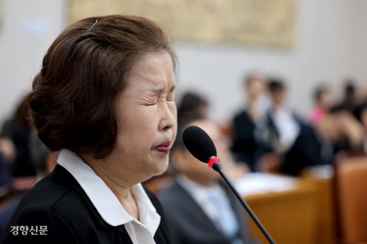 손효숙 리박스쿨 대표 “마녀사냥 당해 심신미약자 됐다” 손효숙 리박스쿨 대표가 10일 국회 교육위원회에서 열린 리박스쿨 청문회에서 고민정 더불어민주당 의원의 추궁이 이어지는 동안 눈을 감고 있다. 박민규 선임기자 |