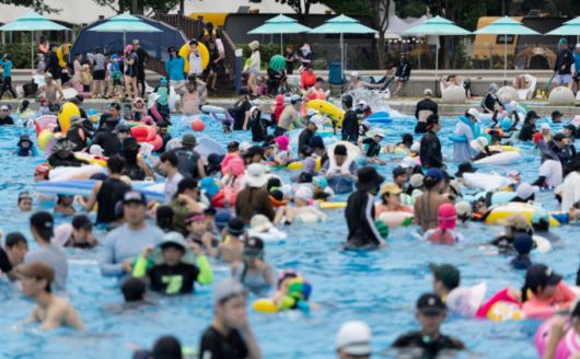 더운 날씨가 이어지면서 서울 광진구 뚝섬 한강공원 수영장이 북적이고 있다. /사진=뉴스1 |
