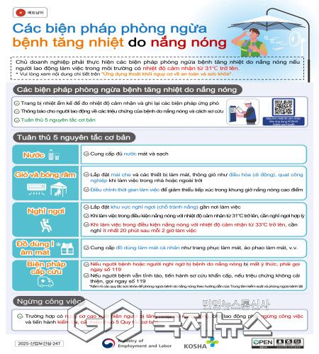 또한, 17개 외국어로 번역된 온열질환 예방 홍보물을 배포해 외국인 근로자들도 스스로 예방 수칙을 준수할 수 있도록 지원하고 있다.