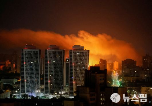 [키이우 로이터=뉴스핌] 장일현 특파원 = 10일 새벽(현지시간) 우크라이나 수도 키이우에서 러시아의 드론과 미사일 공격으로 발생한 화염이 밤하늘로 치솟고 있다. 2025.07.10. ihjang67@newspim.com |