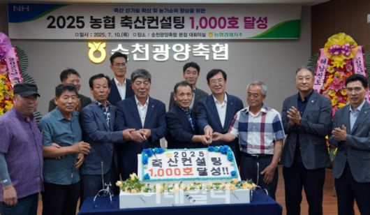 [이데일리 김태형 기자] 농협 경제지주(축산경제대표이사 안병우)가 10일, 순천광양축협(조합장 이성기) 본점에서 안병우 축산경제대표이사, 이성기 조합장, 축산농가 등 관계자가 참석한 가운데 ’25년 축산컨설팅 1,000호 달성 기념식을 개최했다고 밝혔다.