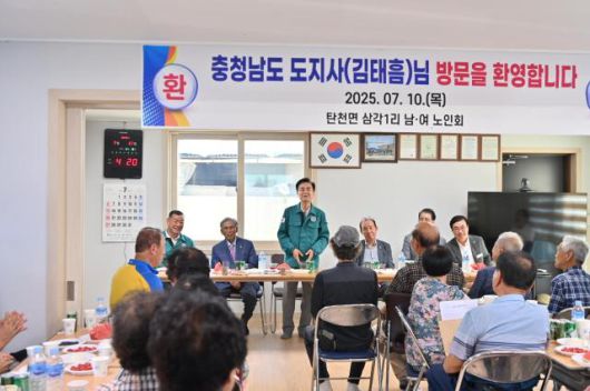 김태흠 지사는 10일 무더위 쉼터로 지정된 홍성과 공주 경로당 2곳을 잇따라 방문했다.