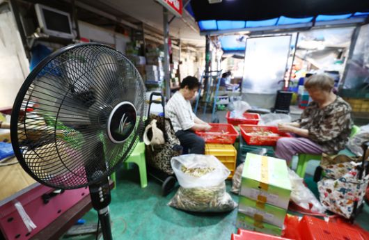 전국 대부분 지역에 폭염경보가 내려진 10일 서울 시내의 전통시장이 발길이 끊겨 썰렁한 모습이다. [뉴스1]▶ 중앙일보 / '페이스북' 친구추가▶ 넌 뉴스를 찾아봐? 난 뉴스가 찾아와! ⓒ중앙일보(https://www.joongang.co.kr), 무단 전재 및 재배포 금지
