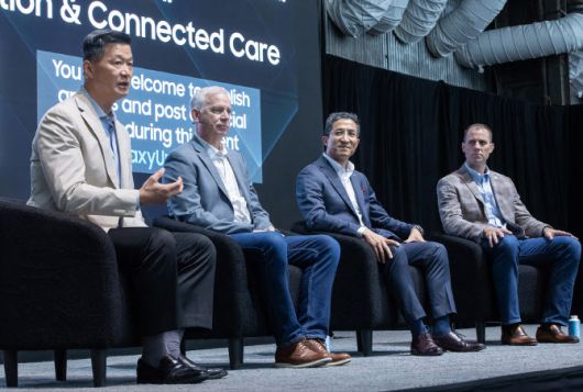 10일(현지시간) 미국 뉴욕에서 진행된 ‘갤럭시 테크 포럼’에 참석한 패널(왼쪽부터 삼성전자 MX사업부 박헌수 디지털 헬스팀장, 젤스(Xealth) CEO 마이클 맥쉐리(Michael McSherry), 美 대형 병원 그룹 어드보케이트 헬스(Advocate Health) 부사장 라수 스레스타(Rasu Shrestha), 美 근골격계 홈케어 솔루션 회사 힌지 헬스(Hinge Health) 대표 짐 퍼슬리(Jim Pursley)) |