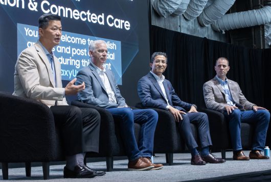 10일(현지시간) 미국 뉴욕에서 진행된 '갤럭시 테크 포럼'에 참석한 패널(왼쪽부터 삼성전자 MX사업부 박헌수 디지털 헬스팀장, 젤스(Xealth) CEO 마이클 맥쉐리(Michael McSherry), 美 대형 병원 그룹 어드보케이트 헬스(Advocate Health) 부사장 라수 스레스타(Rasu Shrestha), 美 근골격계 홈케어 솔루션 회사 힌지 헬스(Hinge Health) 대표 짐 퍼슬리(Jim Pursley)) |