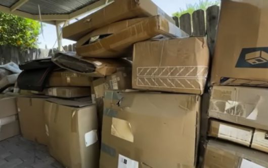 10일(현지시간) 미 ABC7은 1년 넘게 아마존 택배 상자 수백 개를 받은 여성 케이의 억울한 목소리를 전했다. 케이는 1년 전부터 자기 집 앞에 아마존에서 보낸 대형 택배 상자가 쉴 새 없이 배송됐다고 했다. 차고에 쌓아두던 택배 상자는 어느덧 차고를 가득 채우게 됐고 정작 차고에 차를 주차할 수 없는 지경에 이르렀다.