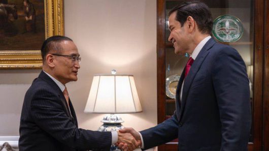 위성락 국가안보실장이 지난 7일(현지 시각) 미국 워싱턴 DC에서 마코 루비오 미국 국무장관 겸 국가안보보좌관과 악수하고 있다./대통령실 |