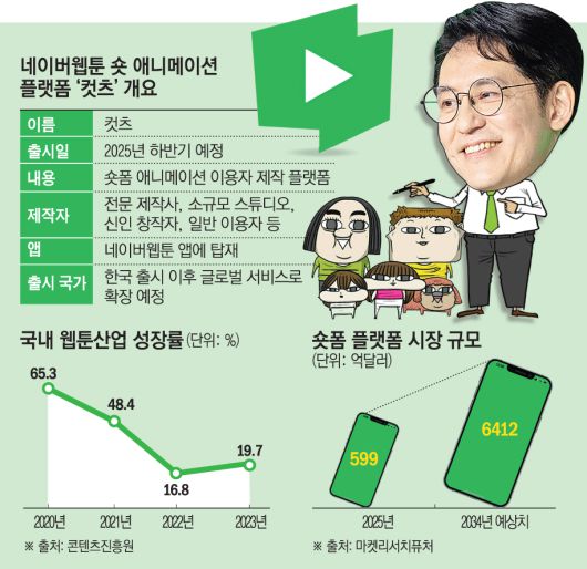 웹툰업계에서는 최근 이러한 위기감이 맴돈다. 쇼트폼의 인기가 높아지며 여가시간에 웹툰을 보던 이용자들이 쇼트폼으로 넘어간다는 설명이다. 그러나 이러한 우려를 되려 기회로 포착한 인물이 있다. 김준구 네이버웹툰 대표다. 과거 ‘도전만화’라는 개방형 웹툰 창작 플랫폼을 만들어 웹툰 산업을 키우고, 사실상 웹툰작가라는 직업을 만들어낸 그가 이번엔 쇼트폼 애니메이션 플랫폼으로 해당 산업을 선점해 ‘쇼트애니 크리에이터’를 만들어낼 수 있을지 주목된다.