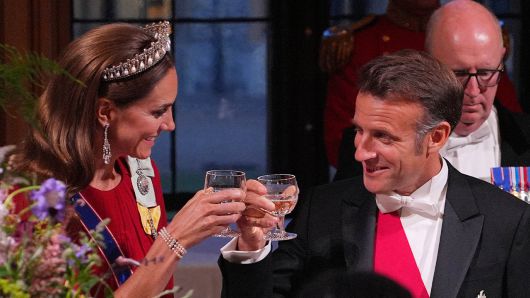 마크롱 대통령은 참석자들의 술잔이 모두 채워진 후 미들턴 왕세자빈과 건배하며 그에게 윙크를 날렸습니다.