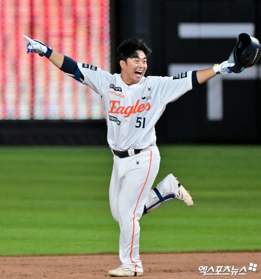 버티자 기회가 찾아왔다. 8회말 한 점을 따라붙은 한화는 9회말 KIA 마무리 정해영 상대 1사 만루의 찬스를 잡았다. 이진영, 황영묵의 연속 안타 후 대타 하주석의 번트에 2루주자 이진영이 포스아웃 되면서 1사 1, 2루. 하지만 심우준 볼넷으로 만루 찬스가 이어졌고, 최인호가 파울플라이로 물러났으나 리베라토의 밀어내기 볼넷으로 2-2 균형을 맞췄다.