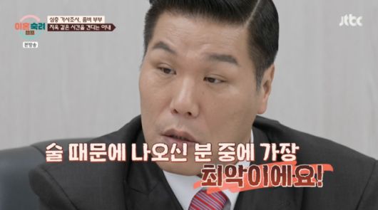 [OSEN=박근희 기자] '이혼숙려캠프’ 서장훈이 '좀비 부부' 남편의 충격적인 술버릇에 경악을 금치 못하며 "역대 최악의 주사"라고 언급했다.