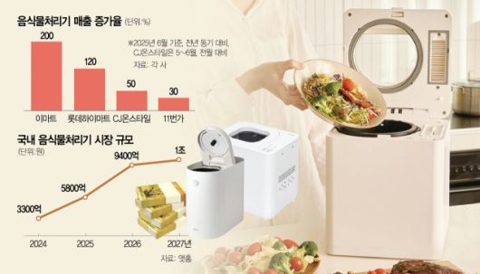 실제 음식물 처리기 시장은 급성장하고 있다. 홈 라이프스타일 솔루션기업 앳홈에 따르면, 국내 음식물 처리기 시장규모는 2023년 1850억 원에서 지난해 3300억 원으로 78% 성장한 데 이어 2027년에는 1조 원에 달할 것으로 전망된다. 그럼에도 가정 보급률은 아직 10% 이하로 성장 가능성이 매우 크다. 에어컨 보급률이 2023년 기준 98%인 것과 비교하면 음식물 처리기 시장은 여전히 초기 단계인 셈이다.