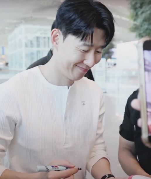 10일 인천국제공항에서 포착된 손흥민은 팬들과 인사를 나눈 뒤 런던행 비행기에 올랐다.