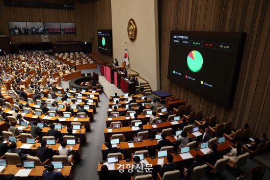 지난 3일 국회 본회의에서 상법 일부개정법률안이 통과되고 있다. 박민규 선임기자 |