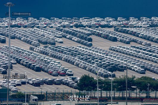 지난 7일 경기 평택항 자동차 전용부두에서 선적 중인 수출용 차량. 문재원 기자 |