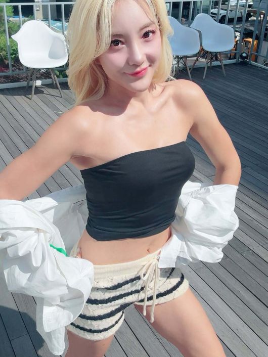 사진 속 바다는 탈색한 헤어스타일에 튜브톱 상의와 짧은 바지를 입은 모습이다. 1980년생으로 올해 만 45세인 그는 군살 없는 늘씬한 몸매를 드러내 시선을 사로잡는다.