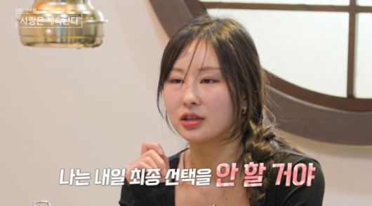 5기 영호 역시 "솔로나라 때와 마찬가지로 제 감정에 충실하도록 하겠다"고 한 뒤 24기 정숙에게 직진했다. 두 남자의 선택을 받은 24기 정숙은 "잠도 못 자고 굉장히 고민했지만 전 최종 선택을 하지 않겠다"고 밝혔다. 직후, 24기 정숙은 제작진 앞에서 "마음이 커지지 않았다. 설렘이 안 느껴진 게 가장 크고, 둘한테 다 상처가 될 거 같다"며 최종 선택을 포기한 이유를 털어놨다.