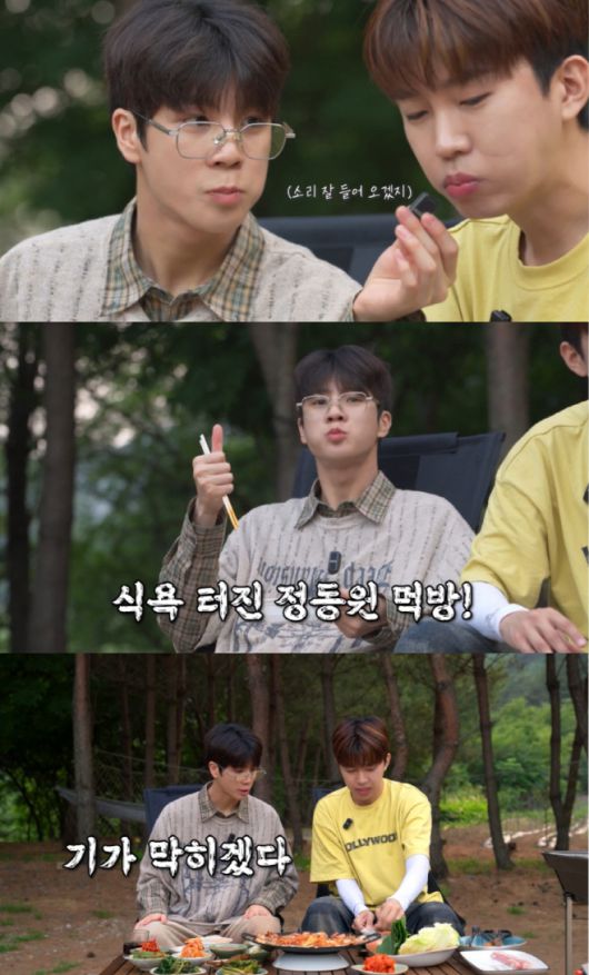 아시아투데이 이다혜 기자 = 가수 정동원이 임영웅과 함께 1박 2일 캠핑 여행을 떠나 유쾌한 시간을 보냈다.