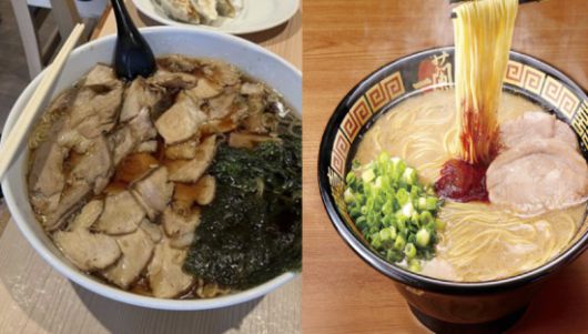 이시바 시게루 일본 총리가 공개한 라멘 사진(왼쪽)과 일본 라멘 프랜차이즈 이치란의 돈코츠라멘. X캡처 |