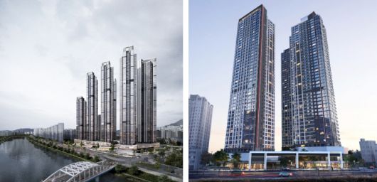 7월에 분양하는 '르엘리버파크센텀'(왼쪽) 및 '가야역롯데캐슬스카이엘' 투시도. |