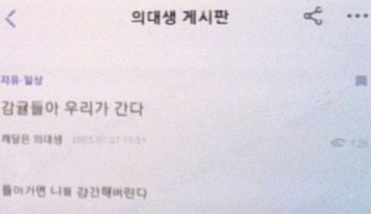 집단행동 과정에서도 위협성 글이 여럿 올라온 사실이 알려졌는데, 최근 의대생들 복귀가 빠르게 이루어지면서 공격 수위도 높아지는 분위기다.