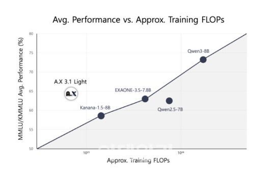 SKT A.X3.1 라이트가 경쟁 모델 대비 낮은 연산량(FLOPs)으로 높은 효과를 내고 있다(사진=허깅페이스) |