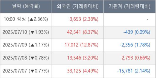 [표] 외국인ㆍ기관 순매매량 (단위 주)