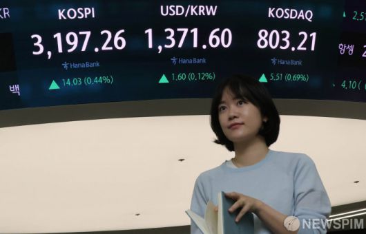 [서울=뉴스핌] 양윤모 기자 = 국내 증시 전체 시가총액이 사상 처음으로 3천조 원을 넘어선 가운데, 11일 오전 코스피가 전장 종가보다 14.03포인트(0.44%) 상승하며 3197.26으로, 코스닥은 5.51포인트(0.69%) 상승한 803.21로 시작한 가운데, 서울 중구 하나은행 딜링룸에서 직원들이 업무를 보고 있다. 서울외환시장에서 원·달러 환율은 전장 대비 1.60원 상승한 1371.60원에 거래를 시작했다. 2025.07.11 yym58@newspim.com