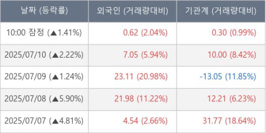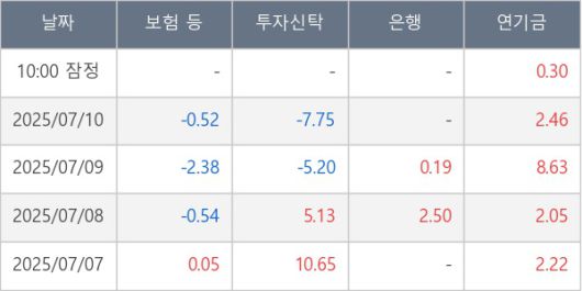 ※ 사모펀드 등 일부 기관의 순매매량은 표시되지 않음