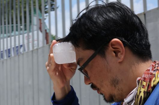 엿새째 폭염특보가 내려진 지난 2일 한 공사장 앞에서 건설노동자가 얼음물로 열기를 달래고 있다. 연합뉴스 |