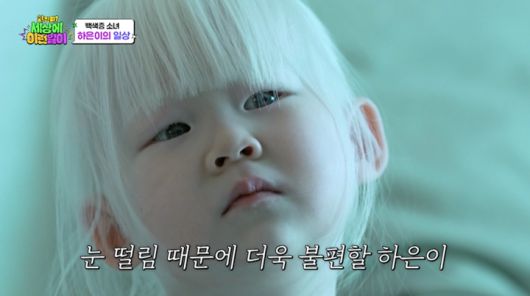 하은이는 외출 시 모자와 선글라스, 선크림으로 온몸을 무장해야 할 만큼 햇빛에 예민해 실내에서 조차 눈부셔하는 모습을 보였다. 이런 하은이가 사람들의 곱지 않은 시선에 상처를 받았다는 사연이 전해져 안타까움을 더했다.