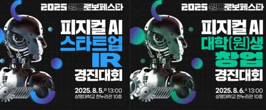 충남콘텐츠진흥원(원장 김곡미)은 오는 8월 5일 천안 상명대학교에서 열리는 '2025 월드 로보 페스타' 주요 프로그램으로 '피지컬 인공지능(AI) 스타트업 IR 경진대회'와 '피지컬AI 대학(원)생 창업 경진대회'를 치를 참가팀을 오는 18일까지 모집한다고 11일 밝혔다.