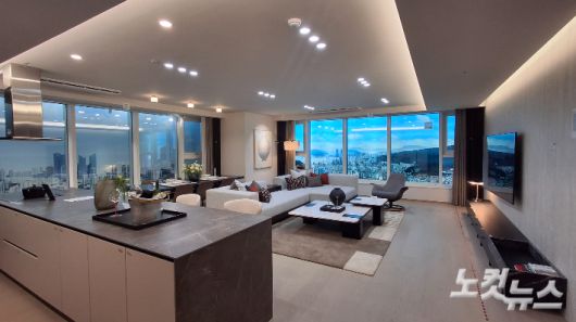 르엘 리버파크 견본주택에 마련된 154 유니트 거실. 강민정 기자 |