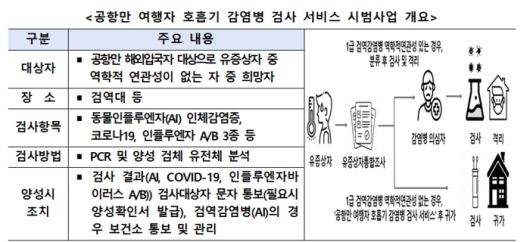 공항만 여행자 호흡기 감염병 검사 서비스 시범사업 개요(자료=질병관리청) |