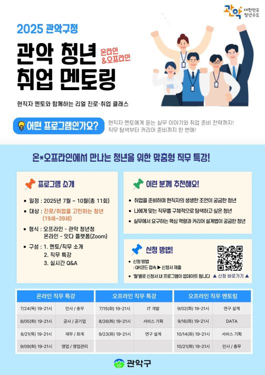 [헤럴드경제=박종일 기자]관악구(구청장 박준희)가 올해부터 기존 ‘삼성전자 청년 취업멘토링 사업’을 확대 개편, ‘2025. 관악 청년 취업멘토링’ 사업으로 새롭게 추진된다.