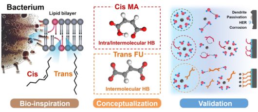 연구팀은 자연계에 존재하는 입체이성질체 특성을 이용해 전해액 첨가제 기술을 개발, 수계배터리 아연 음극 증착 가역성과 수명을 높였다.