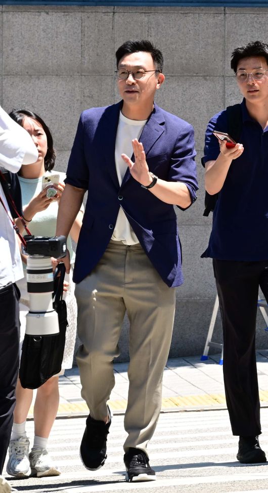 [헤럴드경제=이상섭 기자] 해병대원 순직사건 관련 의혹을 수사하는 이명현 특별검사팀이 윤석열 전 대통령 주거지 압수수색을 마친 11일 오후 윤 전 대통령측 최지우 변호사가 서울 서초구 아크로비스타에서 나서고 있다.