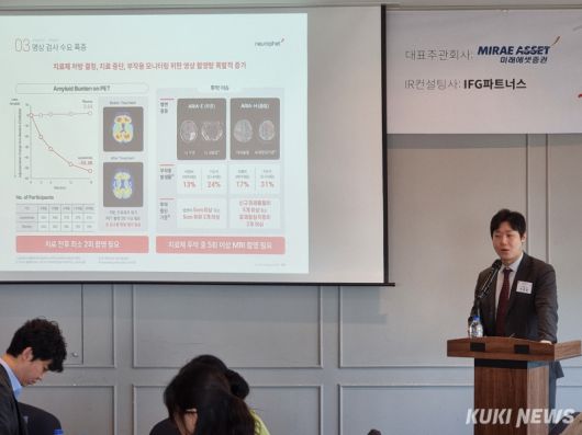 빈준길 뉴로핏 대표이사가 11일 오전 서울 여의도 CCMM빌딩에서 진행한 기업설명회를 통해 영상 분석 솔루션에 대해 설명하고 있다. 신대현 기자 |