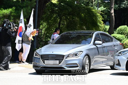 [더팩트ㅣ서예원 기자] 채상병 사건 수사방해 의혹을 수사하는 이명현 순직해병 특검팀의 차량이 11일 오후 윤석열 전 대통령의 사저인 서울 서초구 아크로비스타에서 압수수색을 마친 후 나서고 있다.