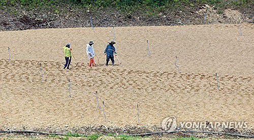 (강릉=연합뉴스) 유형재 기자 = 극심한 가뭄이 계속되는 가운데 11일 국내 최대의 고랭지 채소단지인 강원 강릉시 왕산면 안반데기에서 외국인 근로자들이 배추밭에 물을 주고 있다. 2025.7.11