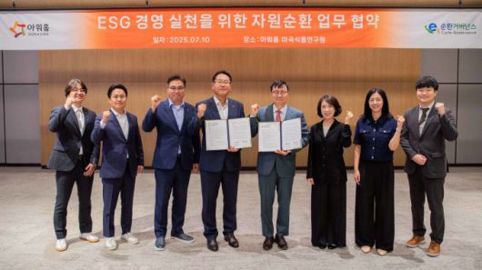 지난 10일 아워홈 본사에서 열린 업무협약식에는 양동운 아워홈 안전환경실장과 E-순환거버넌스 정덕기 이사장 등 관계자가 참석해 자원 순환 문화를 확산하고 자원 선순환 구조 정착을 위해 협력해 나가는 데 뜻을 모았다.