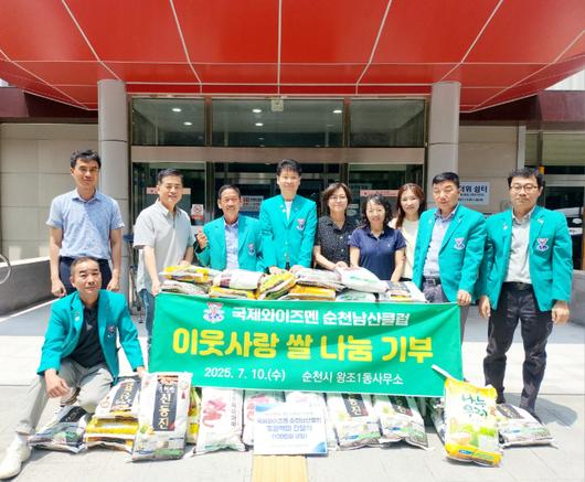 국제와이즈멘 순천남산클럽이 제23대 김회진 회장 취임을 맞아 축하 화환 대신 받은 쌀 40포(약 100만 원 상당)를 순천시 왕조1동 행정복지센터에 기부했다.