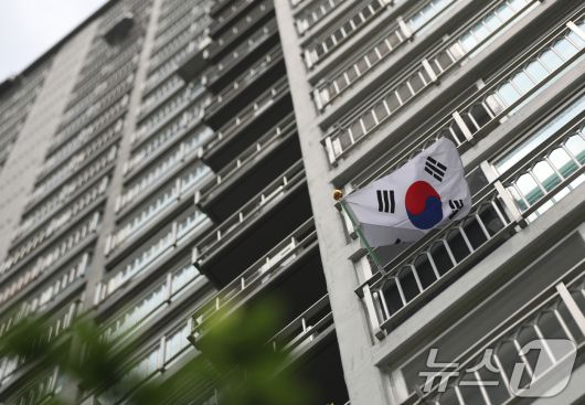 제76주년 제헌절인 17일 오후 경기 수원시의 한 아파트 단지에 태극기가 게양되어 있다. 2024.7.17/뉴스1 ⓒ News1 김영운 기자 |
