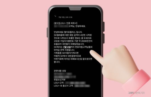 [뉴스웨이 강준혁 기자]LG유플러스가 최근 SK텔레콤의 '위약금 환급' 조치를 악용해 도 넘은 마케팅을 벌여 논란이다. 자사 고객에게 보낸 단체 메시지에서 SK텔레콤 고객을 잠재적 해킹 피해자로 규정하고 가족 중 대상자가 있으면 조속히 통신사를 옮기도록 권유하는가 하면, 정부를 사칭해 SK텔레콤을 더 이상 사용하면 안 된다는 허위 사실을 퍼뜨렸다. 이런 내용의 허위광고를 점검하겠다는 당국의 경고도 무색해졌다는 평가다.
