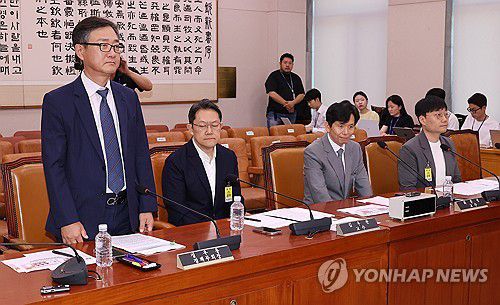 (서울=연합뉴스) 김주형 기자 = 11일 국회 법제사법위원회 법안심사제1소위원회에서 열린 상법 추가 개정을 위한 공청회에 참석한 정우용 한국상장회사협의회 정책부회장이 인사하고 있다.