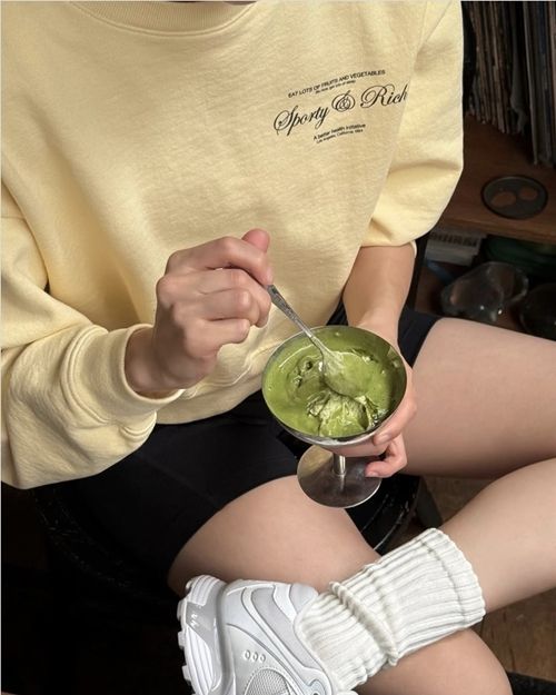 사진 속 손연재는 편안한 크림빛 맨투맨에 블랙 쇼츠, 양말과 운동화까지 더한 ‘꾸안꾸’ 캐주얼룩을 완성했다. 반묶음으로 올린 헤어와 꾸밈 없는 민낯, 그 앞에 놓인 초록빛 아이스크림 등으로 일상을 보여주었지만, 진짜는 따로 있었다.