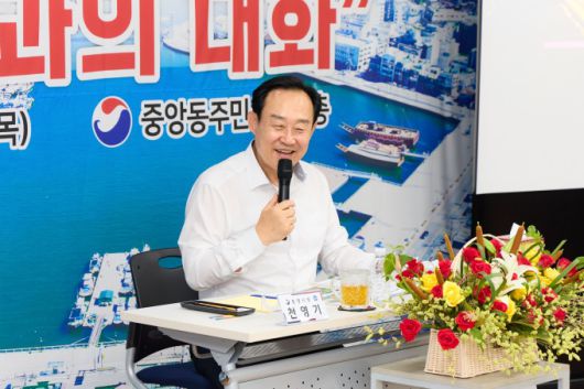 천영기 경남 통영시장이 10일 중앙동에서 2025년 하반기 읍면 순방 '주민과의 대화'를 진행하고 있다.[사진=통영시] 2025.07.11 |