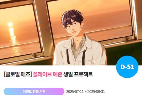 아이돌 순위 정보를 전하는 사이트 '팬앤스타'에서 11일 플레이브 멤버 예준을 위해 특별 이벤트을 처음 진행하고 있다. 오는 9월 12일 생일을 맞이하는 그를 위한 대형 광고 프로젝트다.